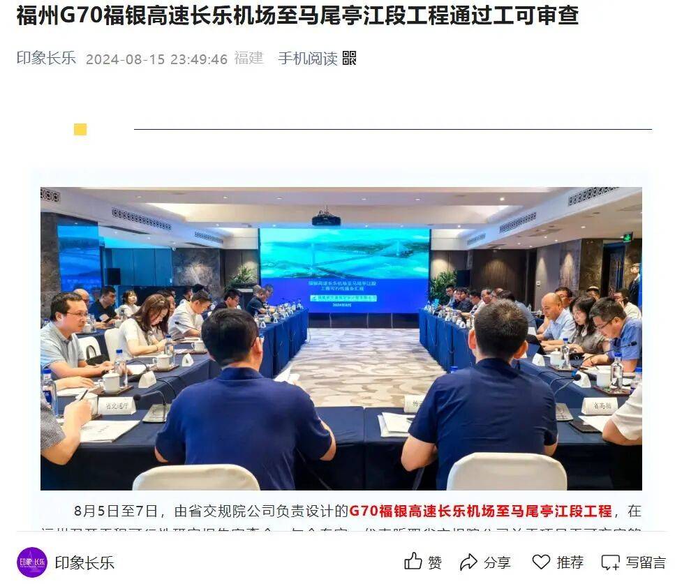 据福建日报报道,2024年8月5日至7日,G70福银高速长乐机场至马尾亭江段工程可行性研究报告审查会在福州召开。